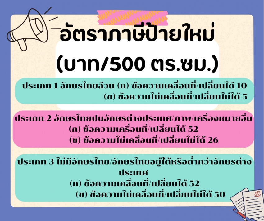 ประชาสัมพันธ์ อัตราภาษีป้ายใหม่