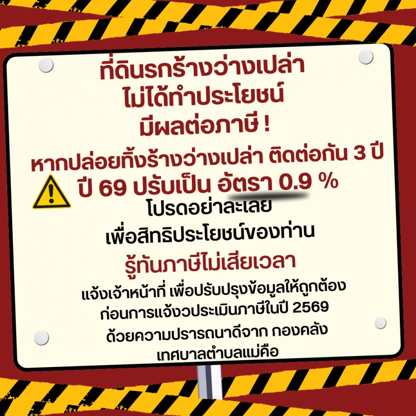 ประชาสัมพันธ์ อัตราภาษีเกี่ยวกับที่ดินว่างเปล่า